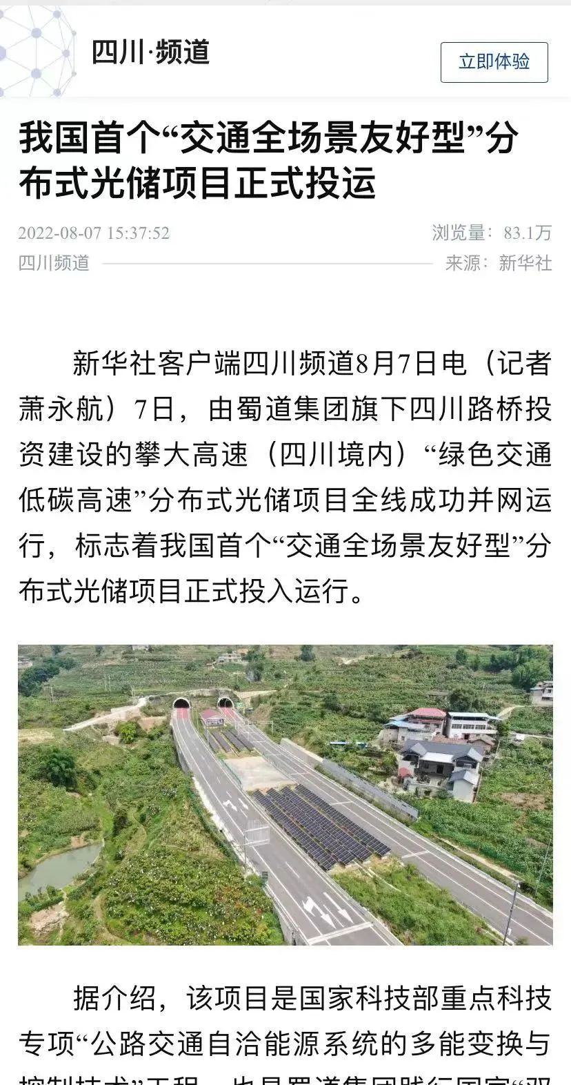 8月7日,由四川路橋清潔能源集團(tuán)投資建設(shè)的攀大高速(四川境內(nèi))“綠色交通、低碳高速”分布式光儲(chǔ)項(xiàng)目全線成功并網(wǎng)運(yùn)行,標(biāo)志著全國首個(gè)“交通全場(chǎng)景友好型”分布式光儲(chǔ)項(xiàng)目正式投入運(yùn)行。