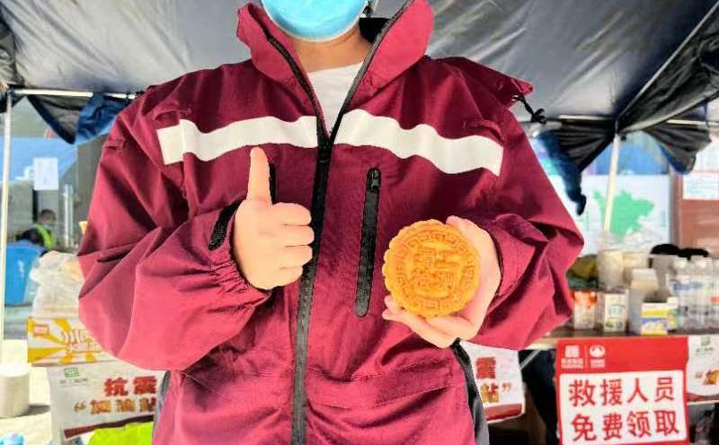 月光所照,皆是故鄉(xiāng)。這個(gè)特殊的中秋節(jié)里,位于瀘定縣得妥鎮(zhèn)聯(lián)合村山里的“抗震加油站”來了一批剛從前線回場的搜救隊(duì)員,“加油站”工作人員急忙給他們遞上印有“蜀工檢測”字樣的月餅,這批隊(duì)員才想起今天是中秋節(jié),地震發(fā)生以來,他們己經(jīng)連續(xù)奮戰(zhàn)多日。雖然這幾天他們幾乎每天都會(huì)來這里補(bǔ)充能量或者在“加油站”工作人員精心準(zhǔn)備的“救援人員休息區(qū)”小憩,儼然和“加油站”的工作人員混成了熟人,但在如此特殊的場合、特殊的節(jié)日里,拿著如此用心月餅,他們的心也被溫暖了。