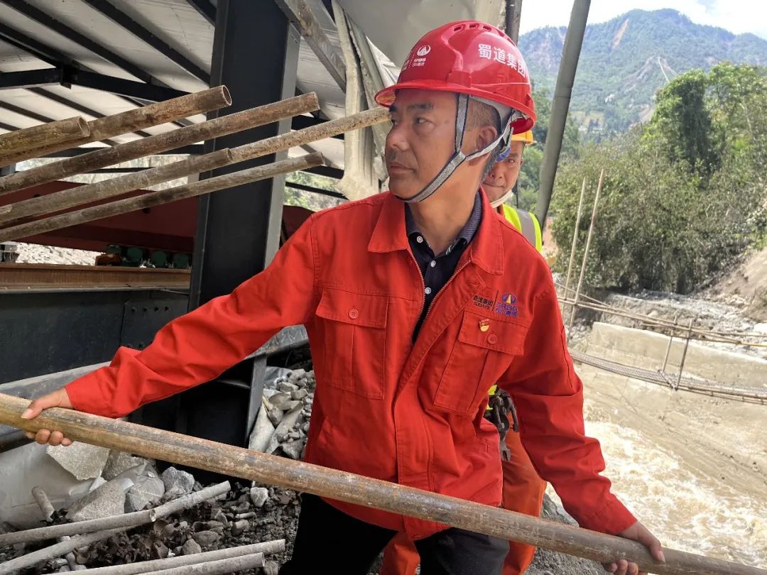 正當王海燕及突擊隊在搶通保暢作業(yè)的時候,突然之間,一側(cè)的山坡上塵煙彌漫,落石沙土不斷砸落?!坝謸u咯,又搖咯!大家趕緊撤離到安全位置!快快快!”余震發(fā)生時,王海燕總是一邊觀察者山體滑坡情況,一邊有序的指揮著機械操作手向安全地段轉(zhuǎn)移,待余震停止后,便又馬上帶人仔細觀望四周,勘探山體及塌方情況,確認暫無危險,便又開始搶通工作?!艾F(xiàn)在想起來都后怕,好多大石頭從我們身邊砸下來,估計個個都有上百斤重哦!莫的法,我是總調(diào)度,更是一名共產(chǎn)黨員,肯定要沖在前面!”回憶起當天驚心一幕的時候,王海燕心有余悸,而這樣的余震場景,在搶通保暢作業(yè)過程中卻時有發(fā)生。經(jīng)過六天的奮戰(zhàn),王海燕和突擊隊已經(jīng)完成了多個點位的搶通保暢任務(wù),白天他主要負責現(xiàn)場指揮調(diào)度,晚上整理總結(jié)并將次日工作計劃落實給每一位工長、操作手。原計劃中秋回家探望近一年未見的父母及妻兒因搶險任務(wù)而又無限期延遲,王海燕略微有些失落,但當他看到災(zāi)區(qū)群眾的困境,此刻只有盡快讓群眾早日回家的念頭。他又來到省道 217 線灣東村堰塞湖搶險區(qū)域,他將和其他更多的路橋鐵軍繼續(xù)戰(zhàn)斗,負責完成永久性人行鋼棧橋和一座臨時車行橋的建設(shè)工作,讓更多的群眾方便通行。