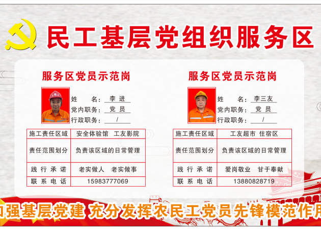 民工黨員創(chuàng)新聚力量。公司聚焦民工黨員力量,以眉山項目、漢巴南項目為代表,開設(shè)民工黨員大講堂、建立民工黨員責(zé)任區(qū)先鋒崗,充分調(diào)動民工黨員積極性,將民工黨員力量注入項目生產(chǎn)建設(shè)。