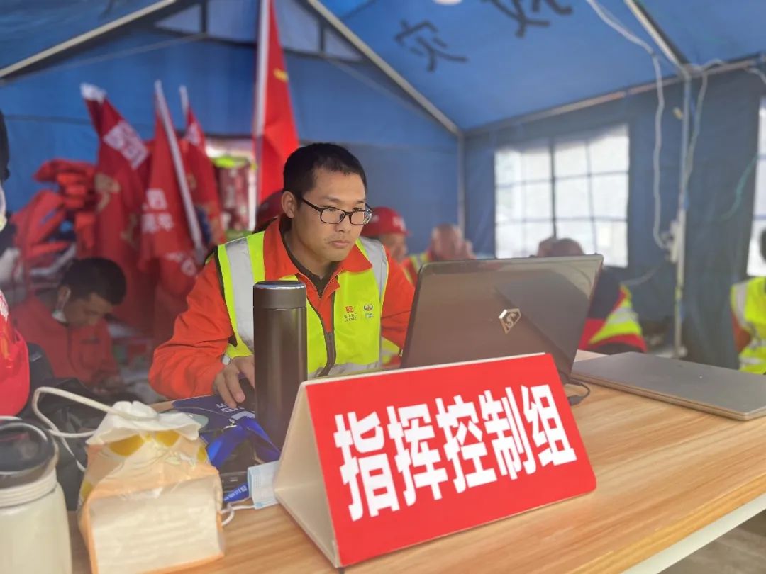 “我熟悉瀘定的地質(zhì)地形,又有多年的項(xiàng)目現(xiàn)場(chǎng)測(cè)量和施工經(jīng)驗(yàn),我申請(qǐng)加入搶險(xiǎn)隊(duì)勘查組!先去前方探探路!”。鄧嘉在項(xiàng)目抗震救災(zāi)應(yīng)急救援會(huì)上主動(dòng)站了出來(lái)。震后1小時(shí),他匆匆給家里發(fā)了一條報(bào)平安的消息,便帶著勘探隊(duì)伍火速奔赴搶險(xiǎn)點(diǎn)。現(xiàn)場(chǎng)余震頻發(fā),多處山體滑坡,不時(shí)飛石滑落,鄧嘉冒著生命危險(xiǎn),在搶險(xiǎn)點(diǎn)極速奔走勘查,“這條路段因山體塌方造成了堵塞,約50米,土石達(dá)2000余方,需要挖掘機(jī)、裝載機(jī)來(lái)疏通!”他緊急撥通后方搶險(xiǎn)隊(duì)的電話,精準(zhǔn)地傳達(dá)著勘查的最新訊息。這為搶險(xiǎn)隊(duì)僅用6小時(shí)就搶通318國(guó)道甘谷地段節(jié)約了時(shí)間、提供了方案。