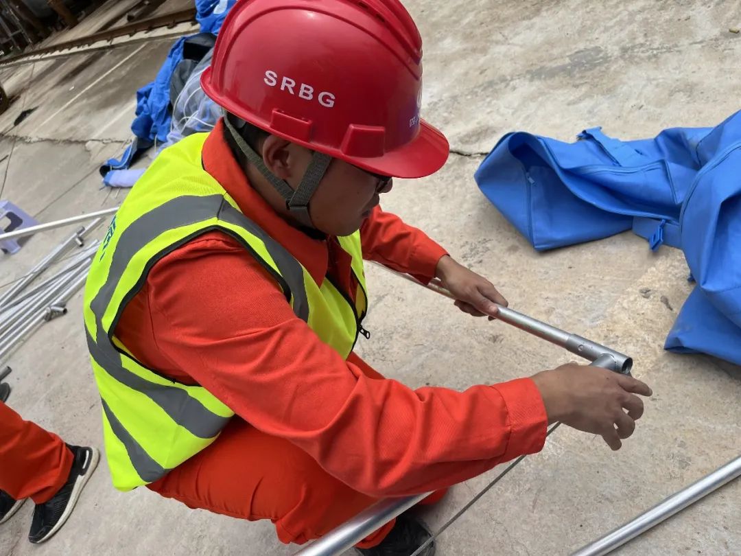 灣東村地處山間,夜里時(shí)有暴雨,導(dǎo)致大渡河水位上漲、水流更加迅猛湍急。原本于9月10日搭設(shè)的棧橋基礎(chǔ)沒(méi)能經(jīng)得住江水怒濤一夜的沖刷而損毀。面對(duì)如此突發(fā)情況,鄧嘉有些沮喪,但一想到任務(wù)緊急,耽誤不得,他立即打起精神,與有經(jīng)驗(yàn)的老工長(zhǎng)們進(jìn)行商討,尋找新的搭橋點(diǎn)位,并對(duì)棧橋結(jié)構(gòu)及材料重新計(jì)劃,爭(zhēng)分奪秒制定出了一套新方案,復(fù)建起這條入村的唯一通道。在歷時(shí)五小時(shí)后,看著藍(lán)天救援隊(duì)從橋上安全、急速地通過(guò)并進(jìn)入灣東村,鄧嘉懸著的心終于落下。緊接著,他又與幾位技術(shù)專家探討起永久車行棧橋的選址及搭建方案······