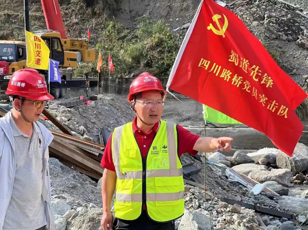 作為四川路橋交建集團隧道公司的負責(zé)人,汪比超親歷過“5·12”汶川大地震,“9·5”瀘定地震發(fā)生后,他迅速判斷出這次情況十分危急,必須立刻趕往現(xiàn)場,那里還有隧道公司6個在建項目,超過200人項目部員工!一路上余震頻頻,他顧不上沿途隨時飛落的沙石,直奔位于得妥鎮(zhèn)的瀘石C2總包部搶險指揮部。根據(jù)搶險指揮部安排,汪比超擔(dān)任應(yīng)急搶險組組長,全面負責(zé)省道S217瀘定段的搶險工作,統(tǒng)籌指揮7支分隊按搶險方案迅速開展工作,爭分奪秒投入到搶險救援工作當(dāng)中。6日下午,第一個好消息傳出——S434金光至磨西段10公里斷道成功搶通,一條從瀘定縣城到震中磨西鎮(zhèn)的生命通道搶通了!此時距離投入搶險不到24小時,汪比超初戰(zhàn)告捷,顧不上喝一口水,又迅速轉(zhuǎn)戰(zhàn)下一個搶險點位。