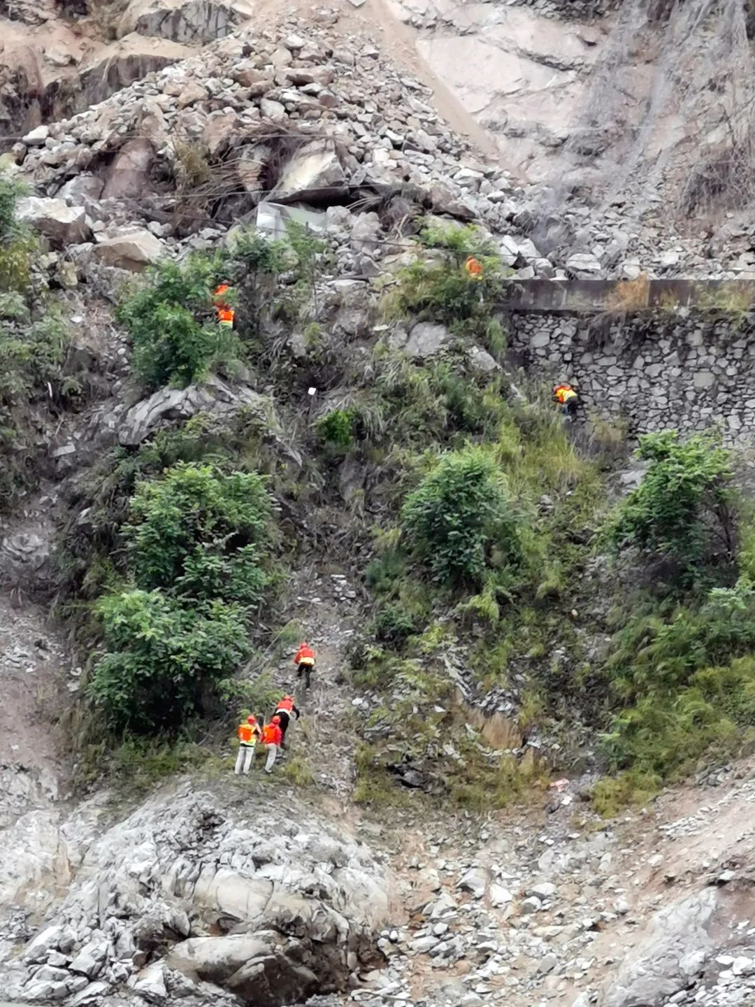 為確保S217省道嚴(yán)重塌方路段“水陸并進,多點開花”方案盡快落實落地,他帶領(lǐng)現(xiàn)場搶險小組沿線實地踏勘,尋找安全的“登陸點位”。面對坡體陡峭、山石嶙峋的幾十米高邊坡,年輕隊員有顧慮,他就第一個帶頭,徒手攀爬上幾十米高的陡坡,以身試險后告訴其他隊員:“看,安全的,沒問題的。”帶著在2013年“映秀泥石流”搶險中被飛石擊中的腿部舊傷,不懼余震帶來的飛沙走石,他連續(xù)2日一刻不停奔走在踏勘一線,即便舊傷復(fù)發(fā)疼痛襲來,他也咬牙堅持,最終,汪比超一行成功尋找到6個登陸點。