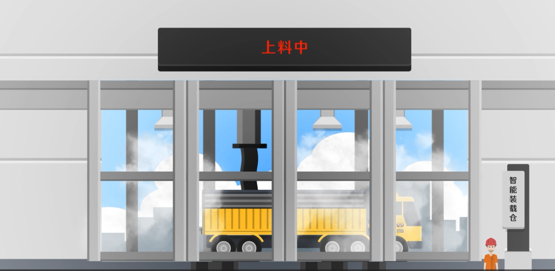 自動(dòng)分層裝車系統(tǒng)有兩種工作模式,一種是只需將車輛停在指定位置,位于車輛上方的運(yùn)輸皮帶便來回勻速移動(dòng),實(shí)現(xiàn)自動(dòng)分層均勻裝料;第二種是將車輛停在電子汽車衡上,當(dāng)稱重系統(tǒng)識(shí)別到車輛重量,智能卸料門打開,牽引電機(jī)帶動(dòng)牽引小車讓電子汽車衡上的裝料汽車從進(jìn)廠端到出廠端來回勻速移動(dòng)的過程中實(shí)現(xiàn)自動(dòng)均勻裝料。與傳統(tǒng)的需要駕駛員頻繁移動(dòng)車輛裝料和過磅稱重相比,該系統(tǒng)降低駕駛?cè)藛T的疲勞,提高了裝車效率,減少混合料的離析現(xiàn)象,而位于車輛下方的地磅可以進(jìn)行過程稱重,減少后期過磅時(shí)間,提升生產(chǎn)效率。該系統(tǒng)無人化操作,減少了合計(jì)約12萬元的人力成本投入。