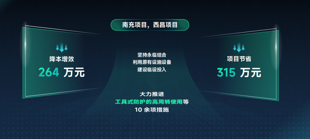 在施工組織方面,落實永臨結(jié)合策略減少臨時道路建設(shè)費用及后期拆除費用、利用原有設(shè)施設(shè)備升級改造、工具式成品防護周轉(zhuǎn)使用等10余項措施,達到降本增效的目的。